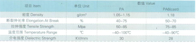 特点是韧性,抗震,有较高的机械强度和耐热性,抗冲强度较好,熔点较高,成型加工性能好,吸水性大,饱和吸水率在11%左右,易熔于硫酸酚类或甲酸中,低温脆化温度为零下20度-30度。